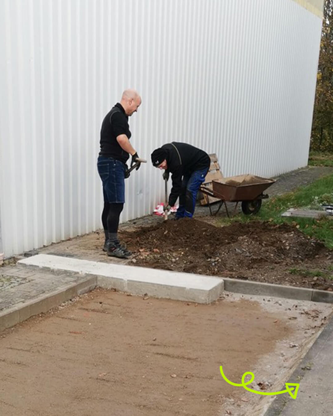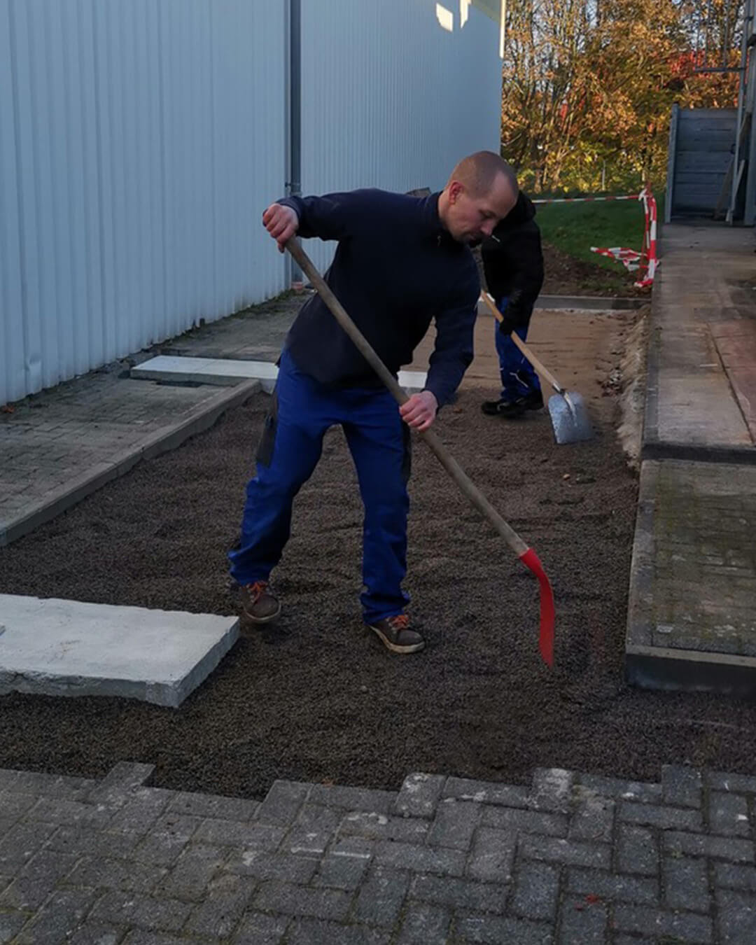Oli, Thomas, Torsten und Michael haben am Wochenende auf der Baustelle fleißig den Boden weiter aufgefüllt, abgerüttelt und begonnen, das Pflaster neu zu verlegen. 🧱 Wir freuen uns, dass es so gut voran geht! 😊
