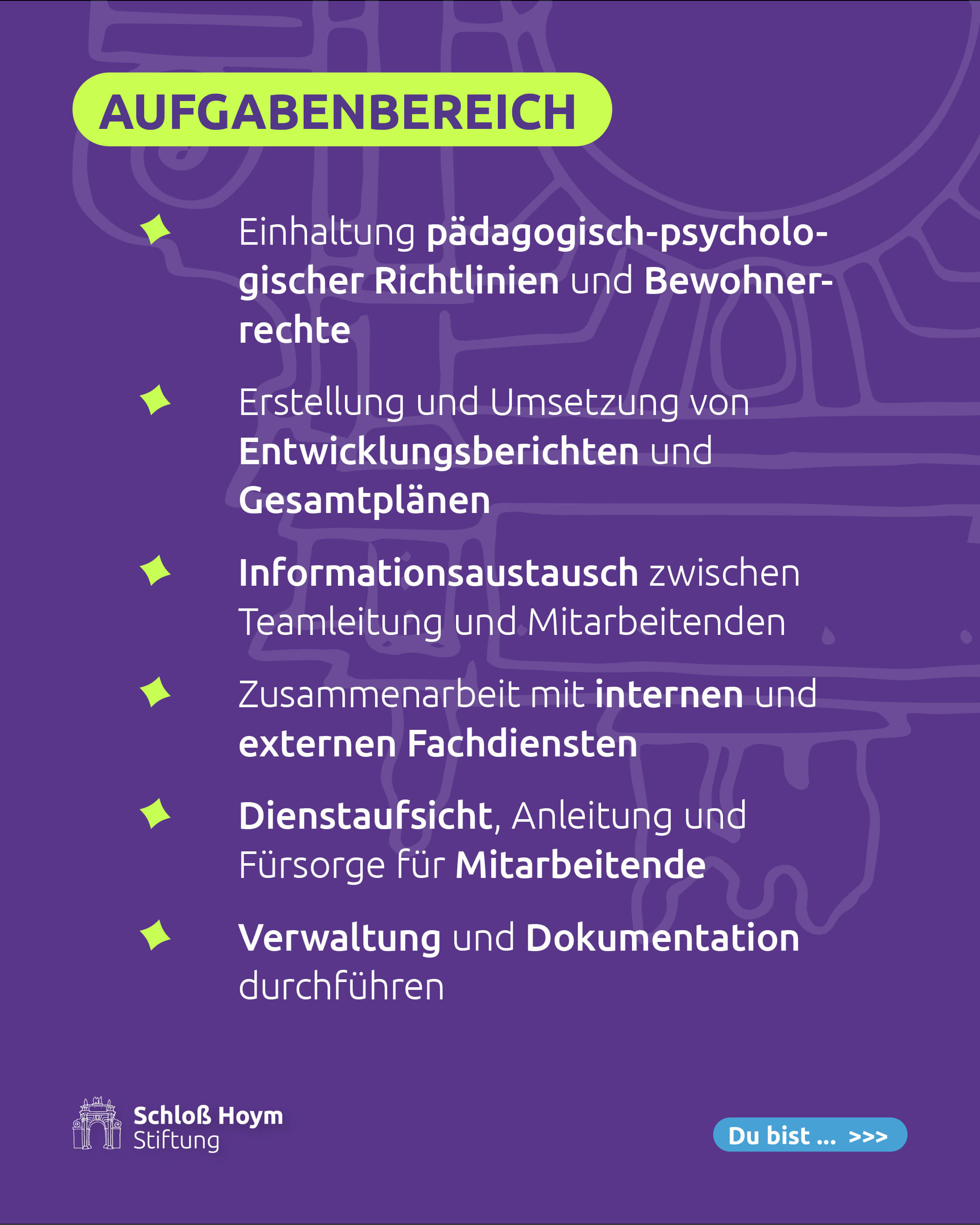 👥 Bei uns führst du ein engagiertes Team, arbeitest mit Fachdiensten zusammen, planst individuelle Entwicklungen und sorgst für ein verlässliches Miteinander.
